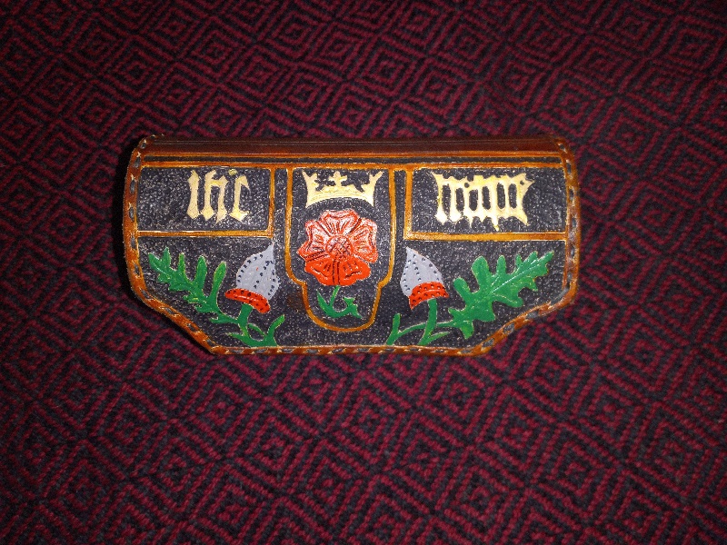 Belt is constructed of a 12 oz base with 12oz plates attached with copper rivets as well as being saddle stitched by hand. This particular belt adjsts from 39-44". It is 5" tall. Buckle straps are 8/9 oz.